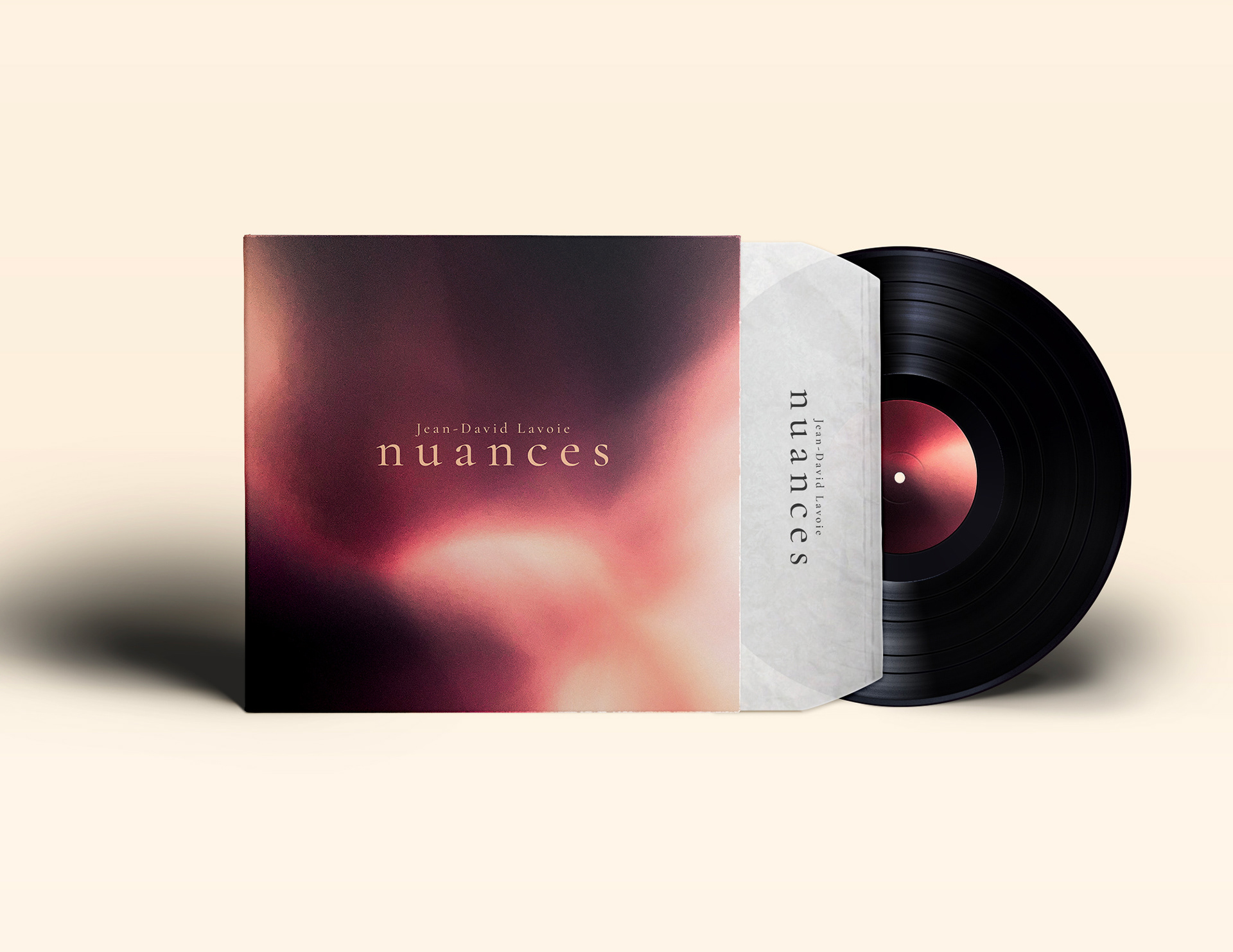 Jean-David Lavoie est pianiste et compositeur de musique néo-classique. Nuances est son tout premier album. Les effets de lumière texturés et les couleurs à la fois chaudes et sombres représentent à perfection l'énergie mélancolique qui plane tout au long de l'album.